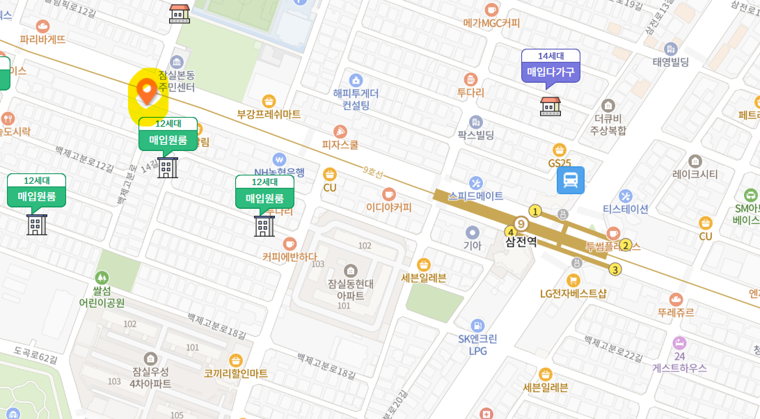 - 삼전역에서 500m 이내에 위치하고 있습니다.