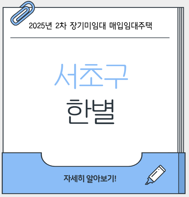 오늘은, 2025년 2차 장기미임대 매입임대주택 8번째 집인, 서초구 한별을 안내드립니다 :)