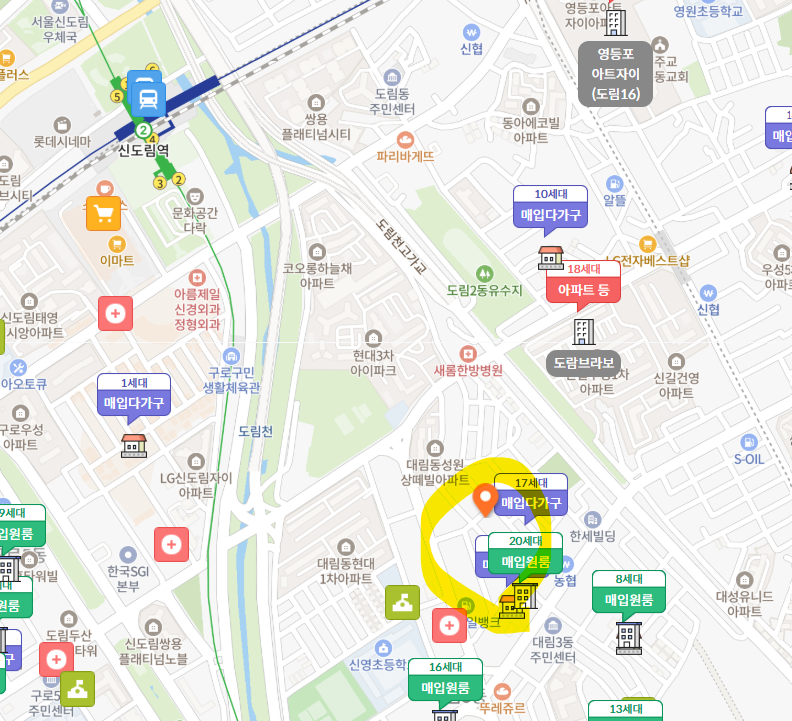 - 신도림역에서 1.2km, 대림역에서 1.0km 떨어진 지점에 있습니다.