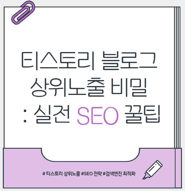 👉 결국, 티스토리 상위노출 SEO 전략은 단순히 글을 쓰는 것이 아니라 검색엔진에 최적화된 글을 작성하는 과정이다. 키워드를 올바르게 선택하고, 제목·본문·이미지·링크까지 꼼꼼히 신경 쓴다면 티스토리 블로그는 자연스럽게 상위노출되고 꾸준한 방문자를 확보할 수 있다.
