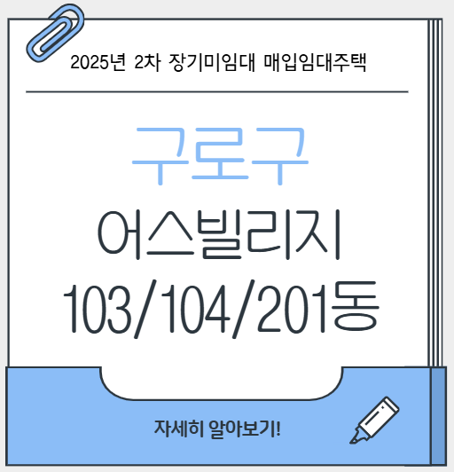 오늘은, 2025년 2차 장기미임대 매입임대주택 17번째 집인, 구로구 어스빌리지 (103동, 104동, 201동)을 안내드립니다 :)