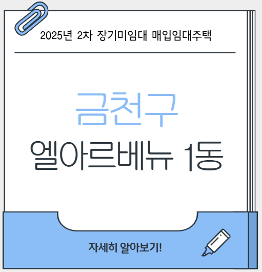 오늘은, 2025년 2차 장기미임대 매입임대주택 16번째 집인, 금천구 엘아르베뉴 1동을 안내드립니다 :)