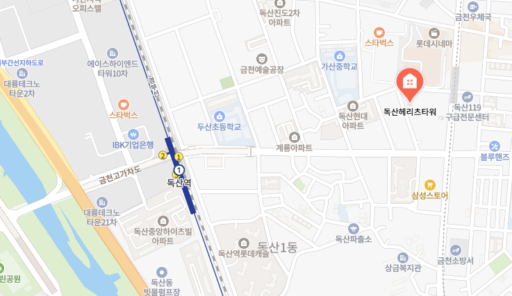 - 독산역에서 0.8km 떨어진 위치에 위치하고 있습니다.