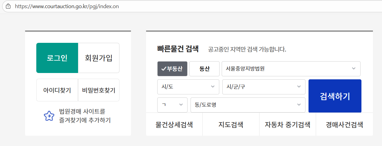 ✔ 대법원 경매정보에서 사건 검색 → courtauction.go.kr