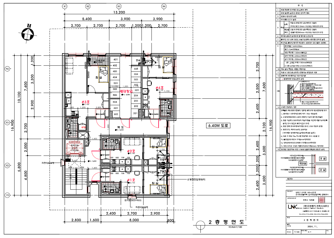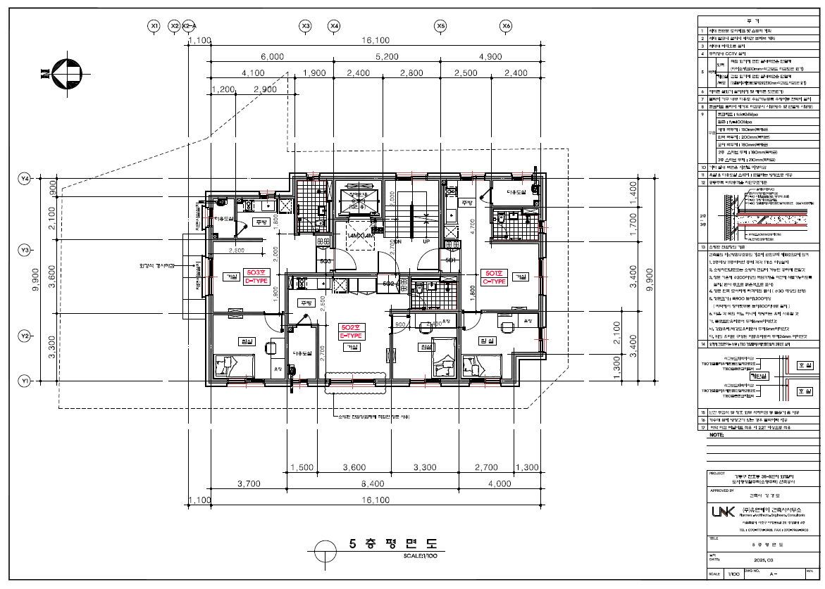 - 주택형 43A: 201-202, 301-302, 401-403, 501-503
