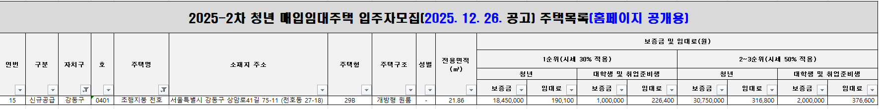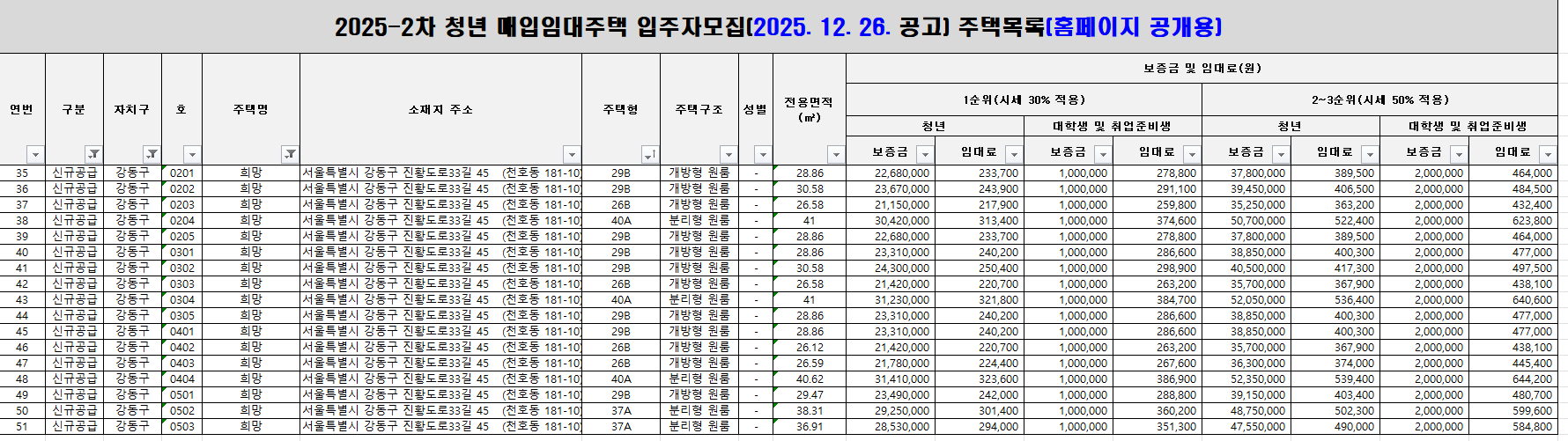 오늘은, 2025년 2차 청년 매입임대주택 '강동구'에 신규 공급이 된 총 4개 주택을 안내드립니다 :)