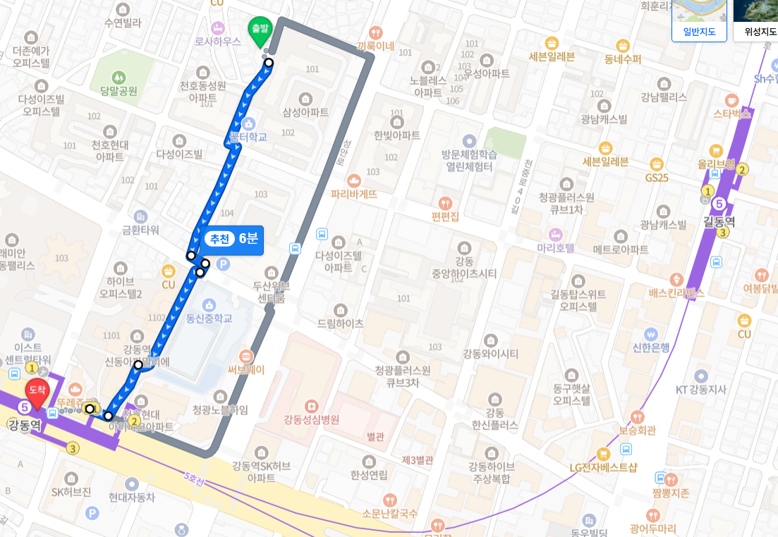 - 강동성심병원이라는 대형병원이 근처에 있네요!
