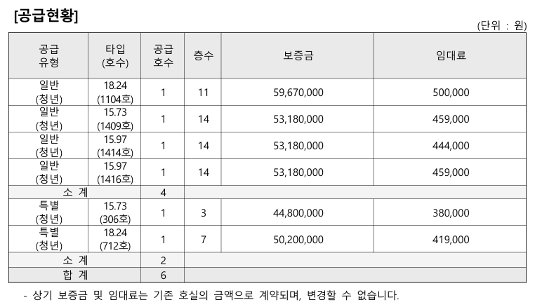 - 아래 표는 2026.01.08에 올라온 공고 기준입니다. 보증금과 임대료는 참고 부탁드립니다.