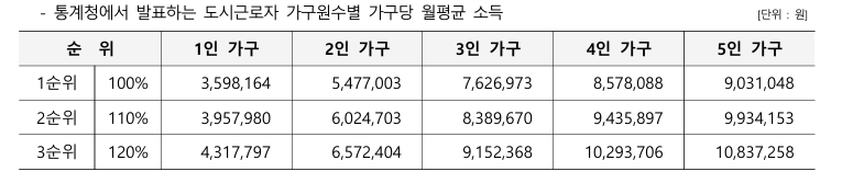 - 청약 시 아래의 소득 기준에 따라 정확한 순위 선택 필요
