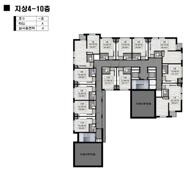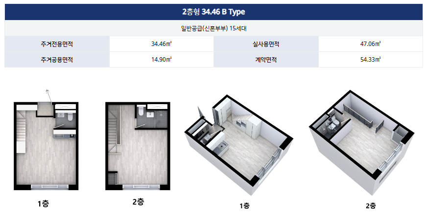 ※ 2층형 안내 - 층고는 1층과 2층이 동일하며 2층에도 에어컨과 보일러가 설치되어 있습니다.